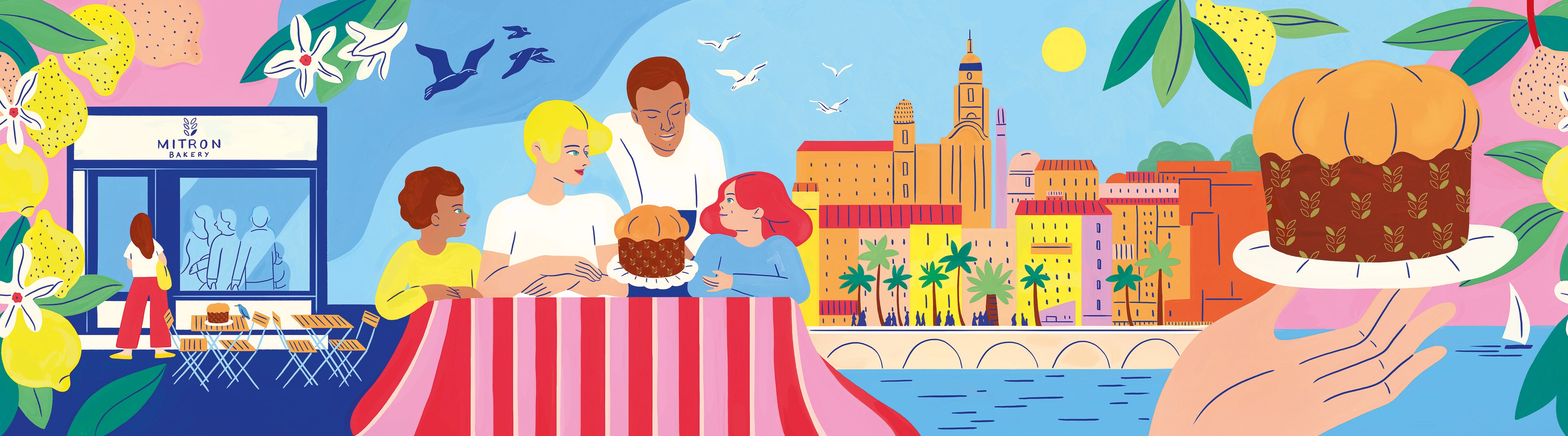 Pour cette saison, le Chef Mauro Colagreco et Mitron Bakery s’associent à l'illustratrice Agathe Singer pour imaginer une boîte à panettone exclusive. Connue pour ses univers colorés et poétiques, l’artiste s’inspire de la lumière, de la générosité et des paysages éclatants de la Côte d’Azur.